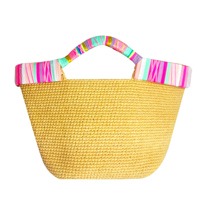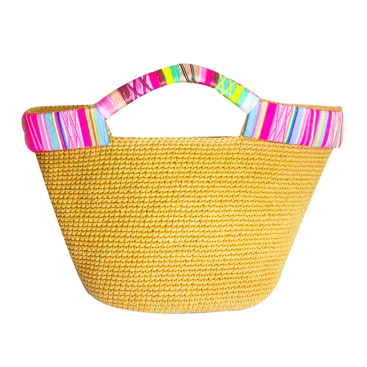 A hand made tote bag with the our signature handmade strap which takes 6 hours to make. A unique stand out accessory that makes the outfit!
