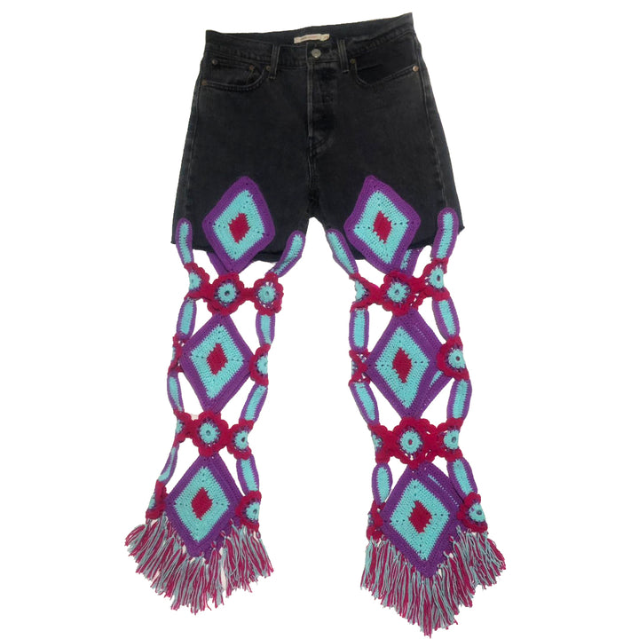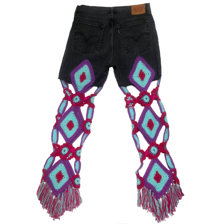 Blue & Black Hand Crocheted Vintage Jeans