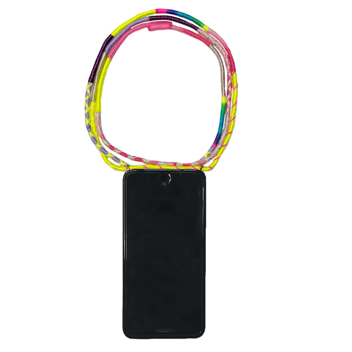 A gorgeous hand wrapped rope attached by hooks to clear phone cases. Cases come in assorted sizes from iPhone X-14. Phone rope is worn around the neck, and non adjustable.