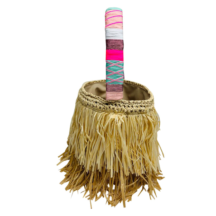 A hand made fuzzy rattan bag with the cutest signature handle design. Completely handmade and the beautiful stand out accessory that makes the outfit!