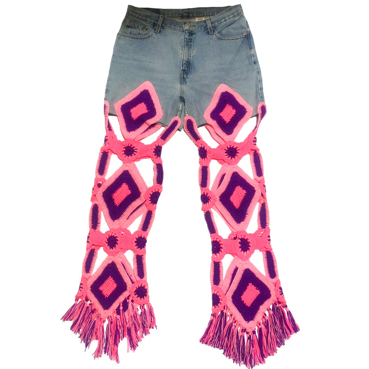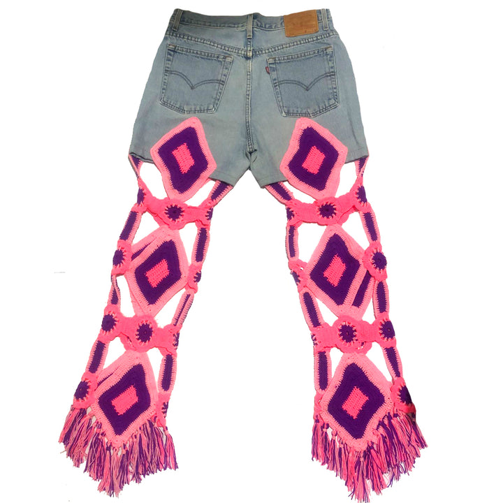 Super comfortable and durable Vintage Levis Jeans, adorned with our handmade palm trees. A simple yet adorable effect. One of a kind, and limited sizing. With a bootcut shape and lower waist.